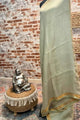 Pure linen sage green with golden mustard border