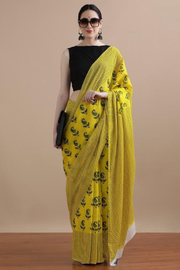 Bagro block print cotton saree